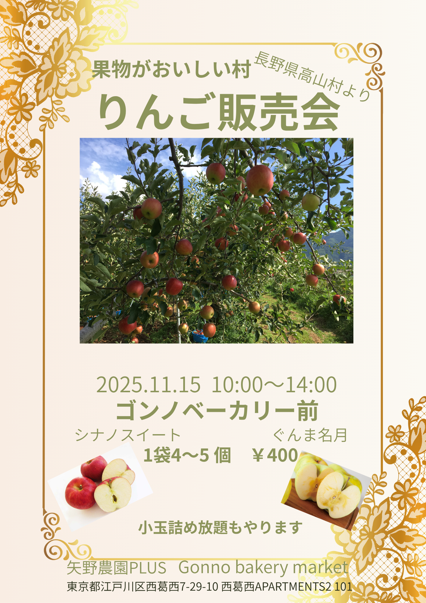 11.15 東京都江戸川区葛西のゴンノベーカリー様でりんごを販売します。